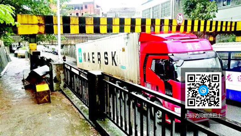 小编获悉,昨日6日傍晚时,一辆红色货车强闯江夏区武昌大道二道口涵洞,车上装载的超高集装箱被卡在了限高梁处,