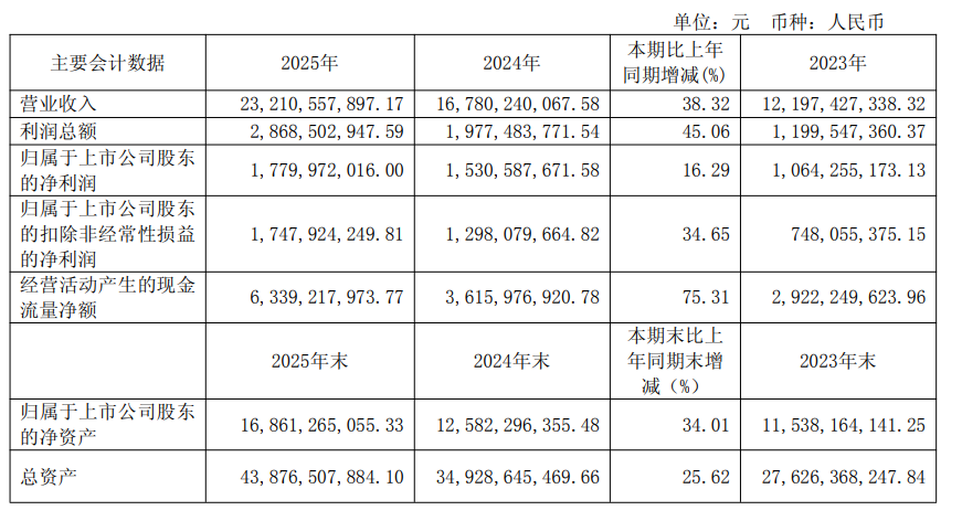 从年报披露的数据来看,中远海特2025年实现营业收入232.11亿元,同比增长38.32%;实现利润总额28.69亿元,同比增长45.06%;实现归属于上市公司股东的净利润17.80亿元,同比增长16.29%;经营活动产生的现金流量净额达到63.39亿元,同比增长75.31%。