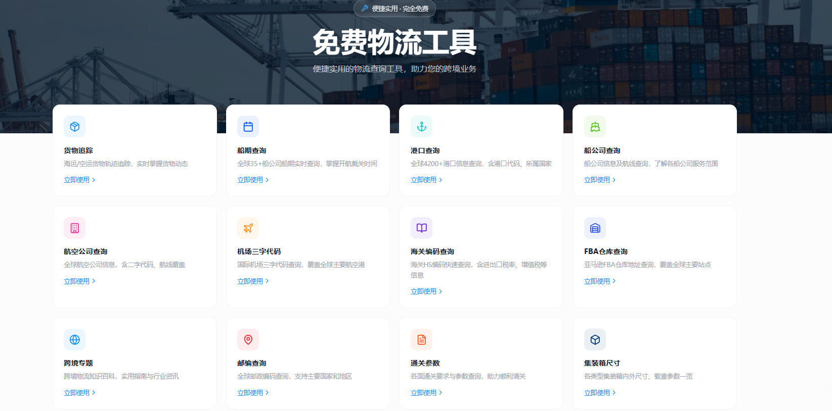 · 船公司 / 航空公司 / 机场 / 航线 / HS 编码 / 邮编 全套工具