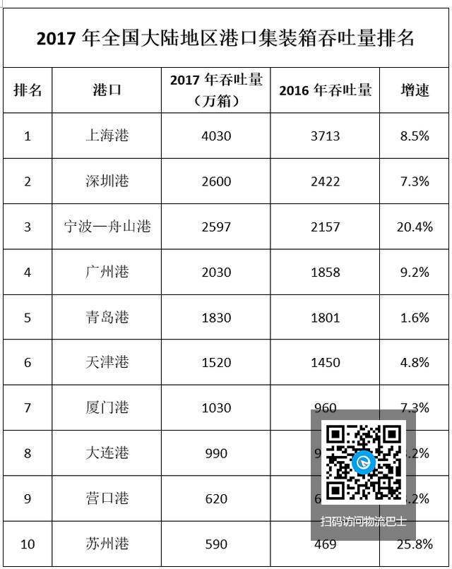 深圳港艰难保持住了第二名的位置,不过已经岌岌可危了。领先第三名宁波—舟山港数万标箱,要知道后者的增速超过了20%.所以没有意外的话2018年深圳港就将滑落第三。