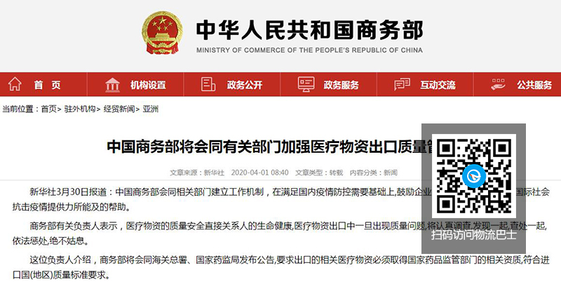 商务部:将加强医疗物资出口质量管理
