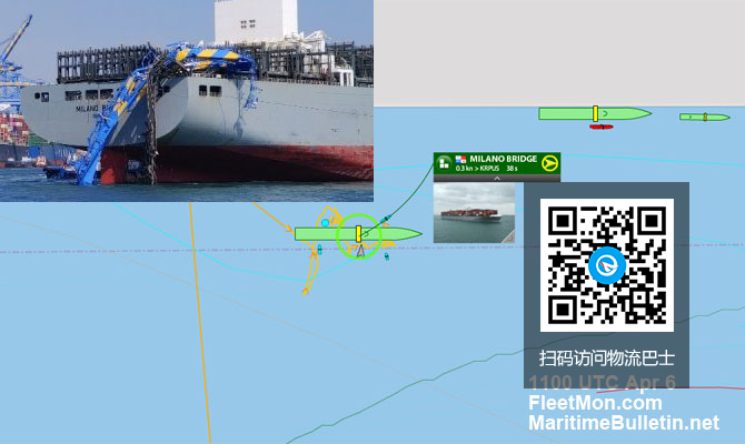 到协调世界时1100时,MILANO BRIDGE还没有系泊,可能是因为船尾有起重机残骸。