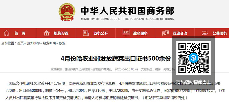 由于实施紧急状态,国家植物检疫部门工作强度加大,工作人员对出口蔬菜履行法检程序并确定检疫情况后,申请人将获得相应的检验检疫证书。(驻哈萨克斯坦使馆经商处)