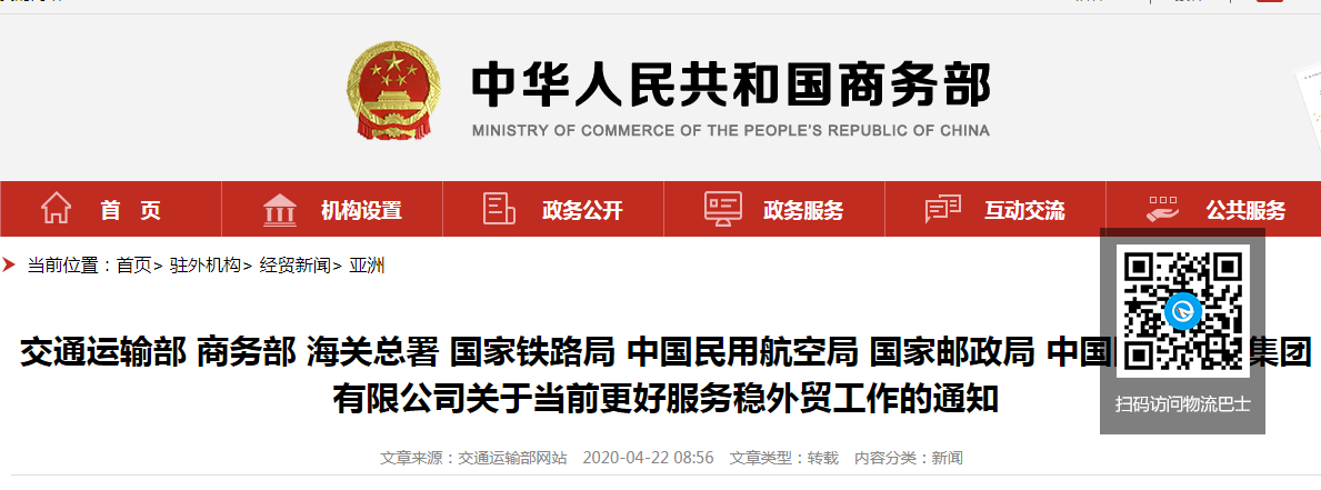为深入贯彻落实习近平总书记重要指示批示精神和党中央、国务院决策部署,在国务院复工复产推进工作机制、外贸外资协调机制下,统筹做好新冠肺炎疫情防控和经济社会发展工作,发挥交通运输“先行官”作用,保障国际国内运输通道畅通便利,优化运输市场环境,提高运输服务效率,更好地服务稳外贸工作,现将有关事项通知如下: