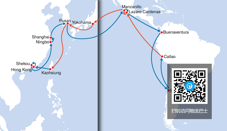该服务主要服务从厦门和青岛到墨西哥主要港口的航运网络,还有从墨西哥到日本、韩国、香港和华北地区的快递航运。
