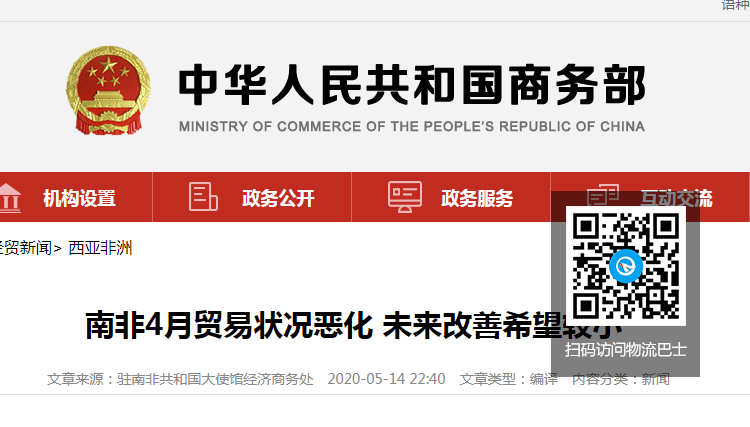南非4月贸易状况恶化 未来改善希望较小