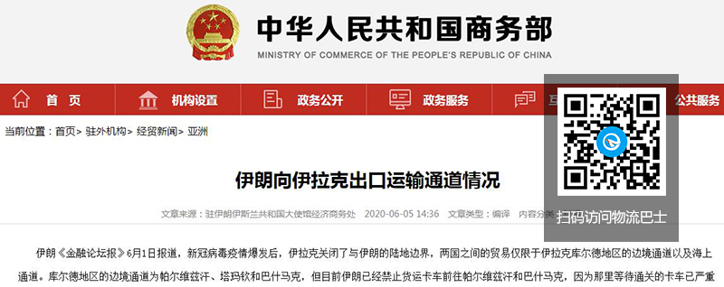 伊朗《金融论坛报》6月1日报道,新冠病毒疫情爆发后,伊拉克关闭了与伊朗的陆地边界,两国之间的贸易仅限于伊拉克库尔德地区的边境通道以及海上通道。