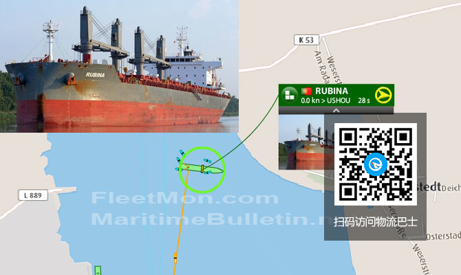 散货船 "RUBINA "号在德国威瑟河搁浅