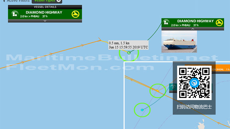 一艘汽车运输船起火,船员弃船