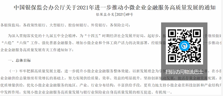 中国银保监会发布《关于2021年进一步推动小微企业金融服务高质量发展的通知》
