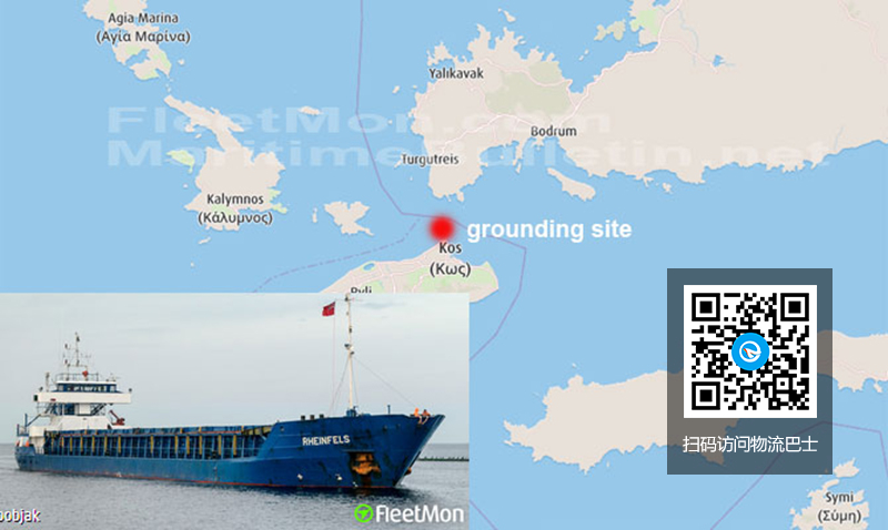 一艘土耳其货船在希腊科斯搁浅